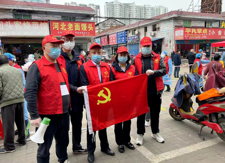 3月22日,商城分公司黨員干部冒著風(fēng)雨,不畏寒冷,下沉抗疫一線(xiàn)與工作人員并肩作戰(zhàn),在測(cè)溫點(diǎn)提示進(jìn)出顧客及商戶(hù)