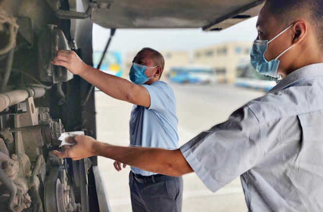 9月7日上午,鄱陽(yáng)長(zhǎng)運(yùn)快客分公司開(kāi)展節(jié)前安全生產(chǎn)大檢查,重點(diǎn)檢查車(chē)輛輪胎、轉(zhuǎn)向、燈光、剎車(chē)等安全部件的使