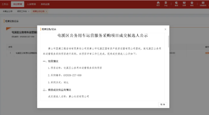 2月10日,黃山市屯溪區(qū)公務(wù)用車運營服務(wù)采購項目中標結(jié)果正式公示,黃山長運憑借扎實的企業(yè)實力、完善的服務(wù)方