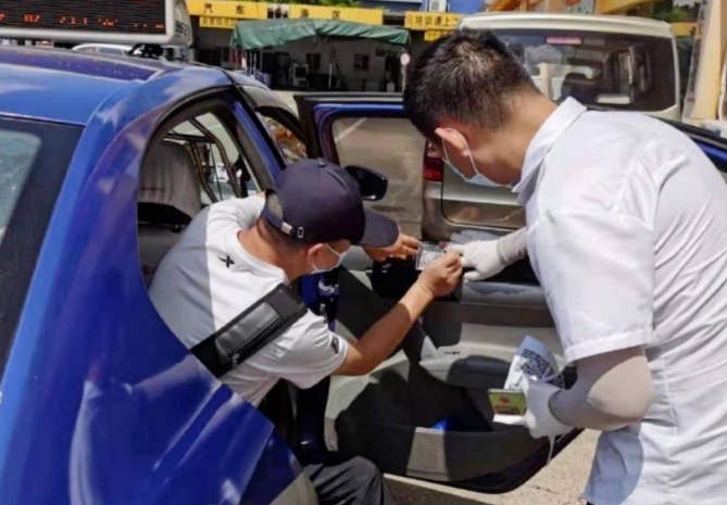 8月6日清晨,長(zhǎng)運(yùn)出租安排工作人員兵分兩路到益駕服務(wù)中心、市內(nèi)各出租車停靠點(diǎn)為司屬出租車張貼昌通碼標(biāo)識(shí),